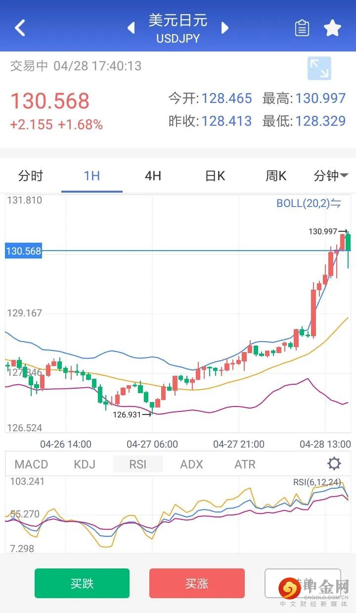 日本央行宣布将在每个工作日进行固定利率操作,无限量购买必要数量的日本国债,使其收益率接近于零。本交易日上午,日元兑美元汇率徘徊在1美元兑换128日元区间,日内涨超1%,下午便跌到了130日元区间。日元上次暴跌至这一水平还要追溯到2002年4月。