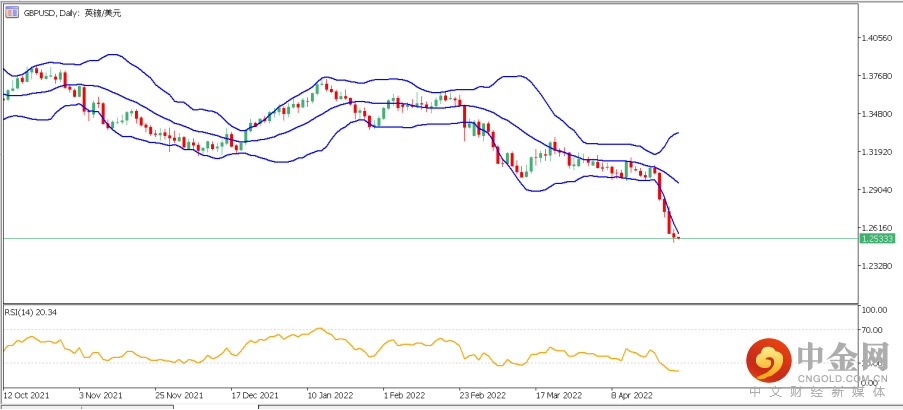 3.镑美(GBPUSD):美元指数不断创新高的同时,镑美连续4日大阴线急速下跌至目前1.2500略上方,从大结构来看,美元指数将有望挑战104.00压力带,镑美日图走势中虽然RSI指标已经进入严重超卖区域,但还未有明显背离,可能跌势还将持续一段时间。