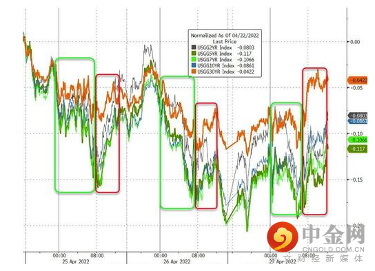 此前,受市场避险情绪的推动,美债收益率自上周五至本周二曾连续三个交易日回落。美联储激进紧缩导致经济衰退的可能性、海外疫情形势、乌克兰战争、美企财报等,均使投资者感到担心,并导致本周早些时候欧美主要股指跌至3月中旬以来的最低水平。