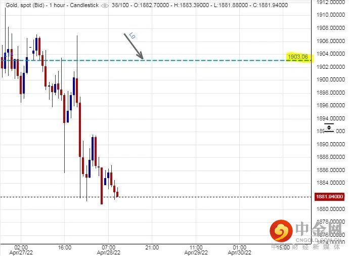 可以部署在$1,903美元左右建立淡仓盘,短线看淡金价一线至$1,869美元水平后止赚,止损在$1,911美元。