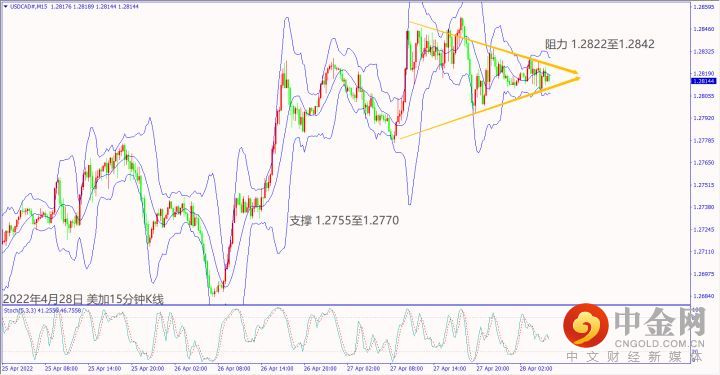今天(28日)加拿大央行行长称将考虑6月1日加息50个基点利好加元,美加一旦跌破小时布林带下轨线1.2799,建议可短空操作。预期今天日本央行利率决议宣布持平,但是行长黑田东彦对日元跌势冲击经济示警可能带动反弹,美日若跌破小时布林带中轨128.51,建议可短空操作。预期欧元区公布消费者和经济景气指数不佳,欧美跌破小时布林带下轨线1.0529,建议可短空操作。