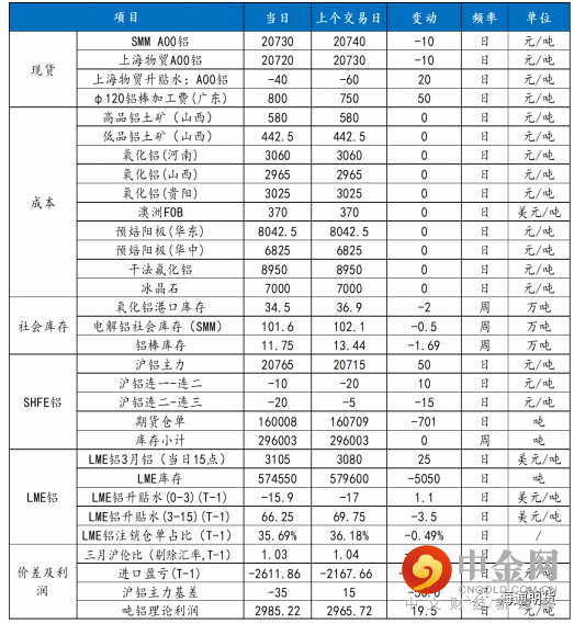 沪铝延续下跌,主力合约 2206 收盘跌 550 元至 20715 元/吨,跌幅为 2.59%;当日 15:00 收盘伦敦三月铝报价 3110.50 美元/吨。现货方面,华东现货成交集中在 20720-20760 元/吨,现货贴水较昨日小幅收窄 20 元至贴 30 元/吨。中原地区现货成交集中在 20930-20970 元/吨,升水继续较昨日扩大 100 元至 180 元/吨,随着绝对价格大幅回落,叠加巩义地区铝锭库存连续走低,持货商挺价意愿较足,但下游追高情绪略显不足。产业方面,据云南统计局称,截止3 月底云南省电解铝产能释放近超八成,3 月份电解铝产量 37.70 万吨,环比增长 43.6%宏观上大幅加息预期下美元指数持续上行,同时国内疫情发散市场对需求恢复信心减弱,施压有色。基本面供应端复产仍稳步进行,需求端恢复仍需时间,下游龙头加工企业开工率降至近两月新低,价格下跌后华东地区现货成交受疫情影响没有明显起色,佛山地区略有好转,有一定补库。社会库存延续小幅去化,当前的下降仍有物流不畅的因素,后续随着运输好转到货量或有增加。短期宏观压制下预计铝价承压运行,关注运输改善情况和下游逐步复工后补库的持续性。沪铝止跌震荡整理,主力合约 2206 收盘涨 105 元至 20765 元/吨,涨幅为 0.51%;当日 15:00 收盘伦敦三月铝报价 3105.00 美元/ 吨。现货方面,华东现货表现仍然偏弱,成交集中在 20710-20750 元 /吨,现货对盘面贴水维持在 30 元/吨附近,下游受疫情拖累并未完全恢复,尤其物流影响出入库。随着假期临近,巩义市场下游仍有部分企业提前备货,持货商挺价意愿明显,成交集中在 20970-21010元/吨,现货升水提升至 220-250 元/吨附近,在高升水条件下,部分企业暂缓提货,但也有部分下游迫于订单压力继续采购。俄罗斯将停止对波兰的所有天然气供应,能源扰动再次显现;而国 内中央财经委要求全面加强基础设施建设,加快新型基础设施建设,市场信心有所回升。基本面供应端复产仍稳步进行,需求端恢复仍需时间,下游龙头加工企业开工率降至近两月新低,华东现货表现仍然偏弱,但佛山和巩义地区部分企业有节前备货对铝价有一定支撑。当下国内疫情的控制情况和需求能否如期兑现仍是影响铝价的主要因素,关注在运输改善和节前备货意愿下库存去化的持续性。