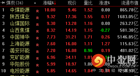 煤炭板块昨日早盘便开始走强,盘中虽一度冲高回落,但尾盘依然收在高位区间。其中,中煤能源涨停,陕西煤业涨9.32%、山煤国际涨9.3%。