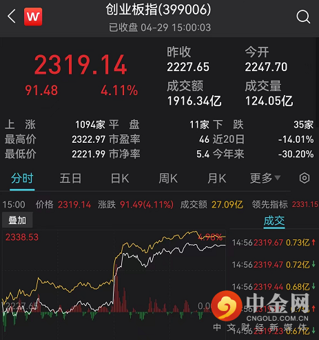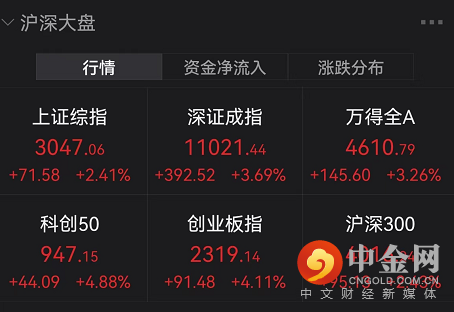 上证指数收涨2.41%,收复3000点;创业板指涨4.11%。两市成交量0.97万亿元逼近1万亿。