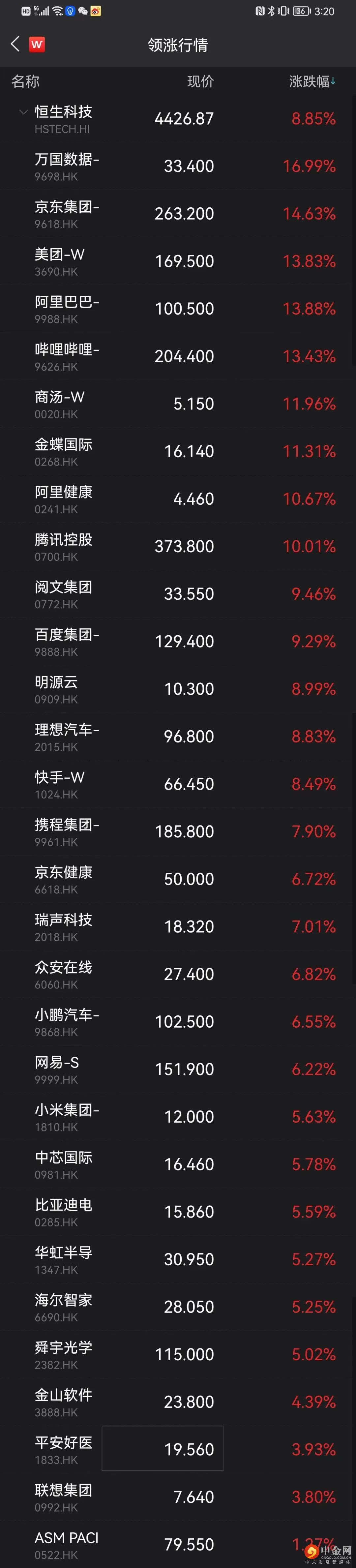 京东、美团、阿里涨超13%,腾讯涨超10%