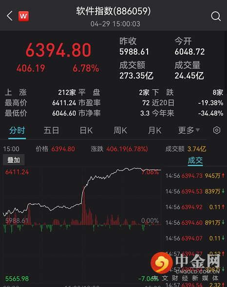软件指数也涨超6.78%。