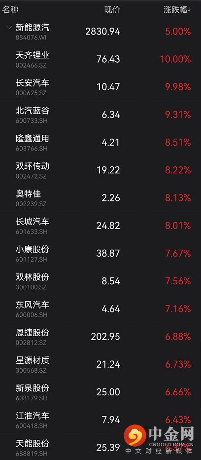 新能源汽车板块随之涨5%。