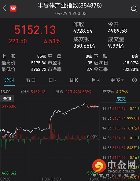 半导体指数涨超4.5%。