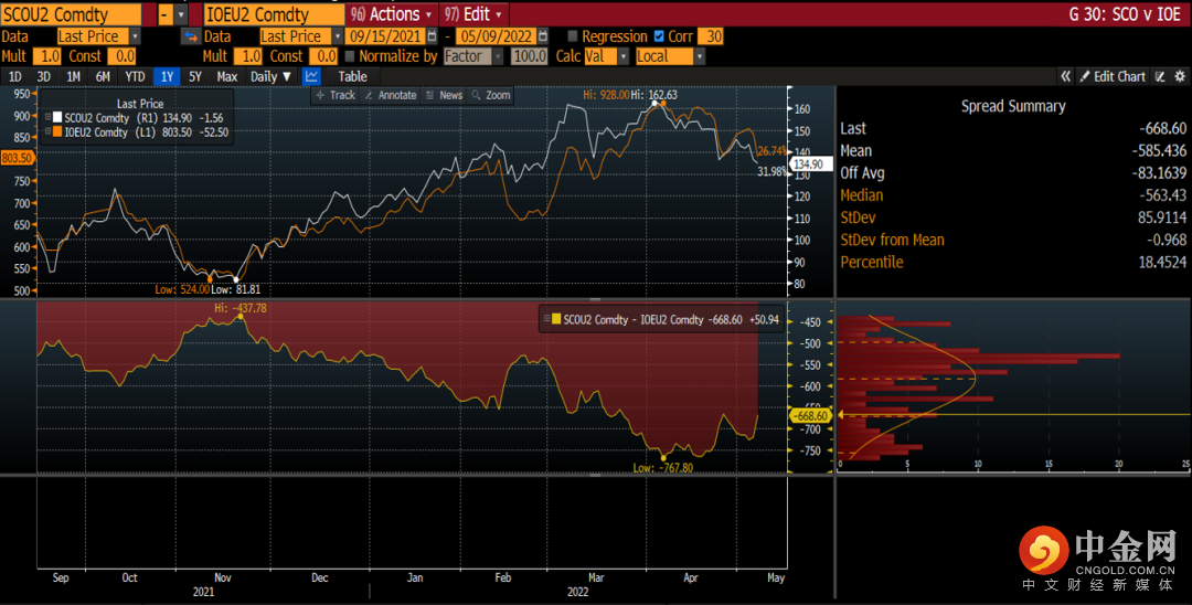 DCE大商所铁矿09月/22年-SGX新交所铁矿09月/22年