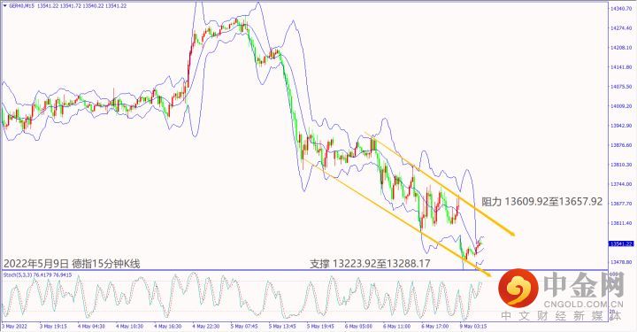上周五(6日)美国公布经济数据好坏参半,造成美国股指处于震荡。但乌克兰总统泽连斯基称目前与俄罗斯进行沟通的所有外交渠道都中断了,也让欧美股指皆下跌做收。预期今天(9日)欧元区公布经济数据不佳,德指冲不过小时布林带中轨13,623,建议可偏空操作。预期今天晚上美国公布经济数据不佳,道琼斯冲不过小时布林带中轨32,626,建议可偏空操作。