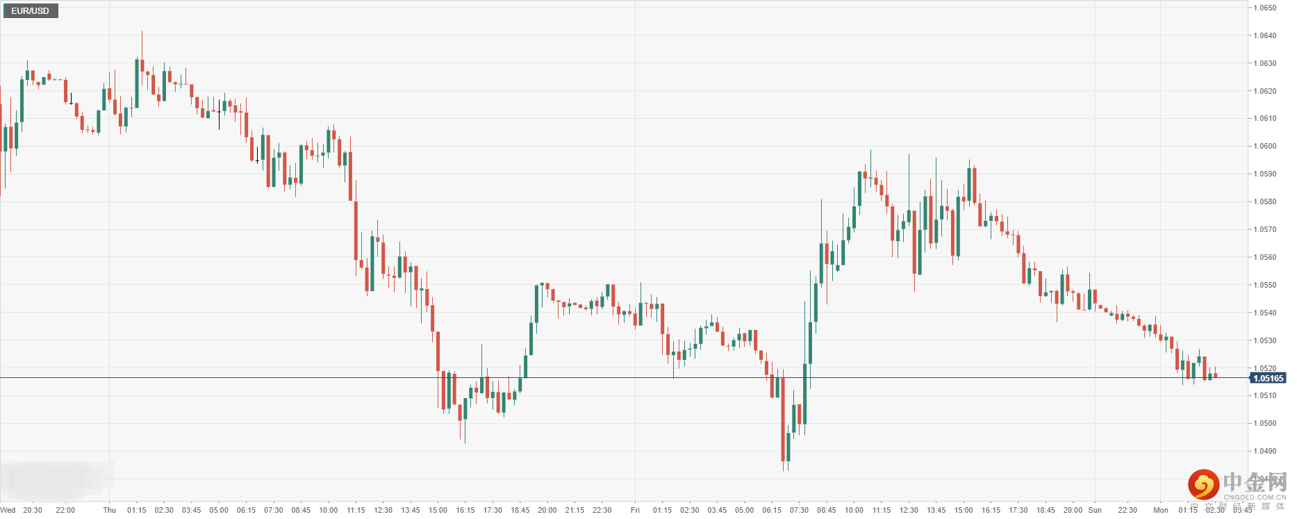 欧元兑美元上周五收盘冲高回落后,今日开盘跌至1.0516,因欧洲经济受能源供应中断而走软,使得欧元下行承压。
