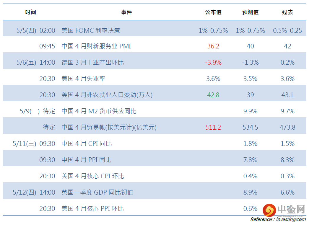 市场密切关注美东时间周三一早公布的4月CPI消费者物价通胀资料,本周还有多位地区联储主席密集讲话。结合重磅通胀数据发布,很可能又是动荡的一周,市场巨震是因为没人知道加息多少足够平息通胀并实现软着陆。