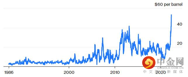 然而炼油商的利润已达到创纪录水平。美国柴油裂解价差(衡量将原油转化为柴油的盈利能力)上周飙升至近每桶55美元的历史新高,不包括在新冠疫情爆发之后WTI原油期货价格跌破零的罕见波动。