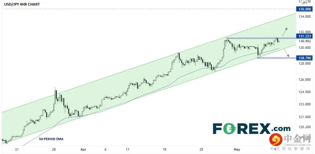 如果美国通胀报告比预期火热(指向双方货币政策进一步广泛背离),该货币对可能在清晰的短线上涨通道内扩大涨势。而如果通胀报告疲弱,或打破前述通道。但要转变短线上涨倾向至中性,则可能需要下破上周低点128.60附近。