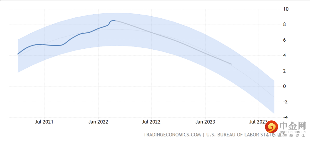 TradingEconomics预计2023年的通胀率将在1.9%左右,这将使通胀率回落到美联储的目标水平。到本季度末,美国的通胀率预计将达到7%。到2023年,美国的通胀率预计将在1.9%左右。