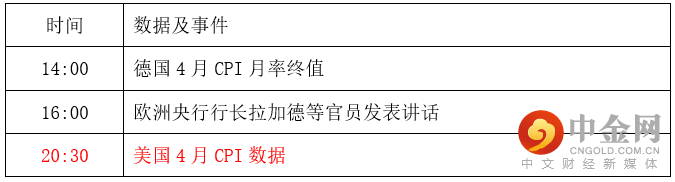 目前市场的焦点在今日晚间的美国4月CPI数据,市场预计该数据年化增幅将为8.1%,低于3月份的8.5%。通胀是否开始有所降温,将对金价未来的走势起关键作用。