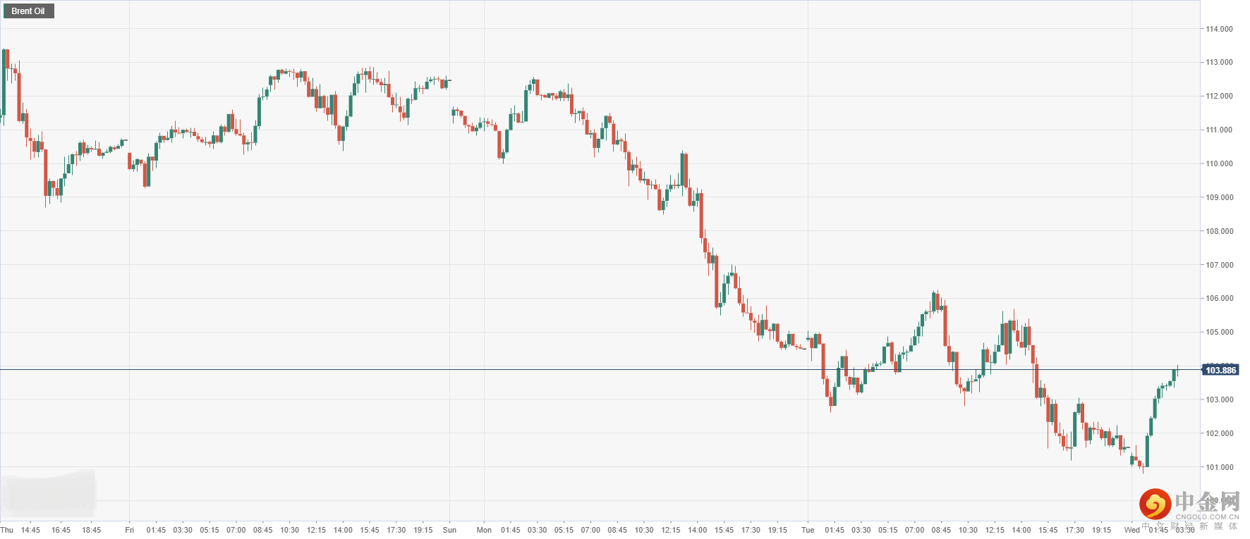 § 原油方面:布伦特原油上升至103.88。