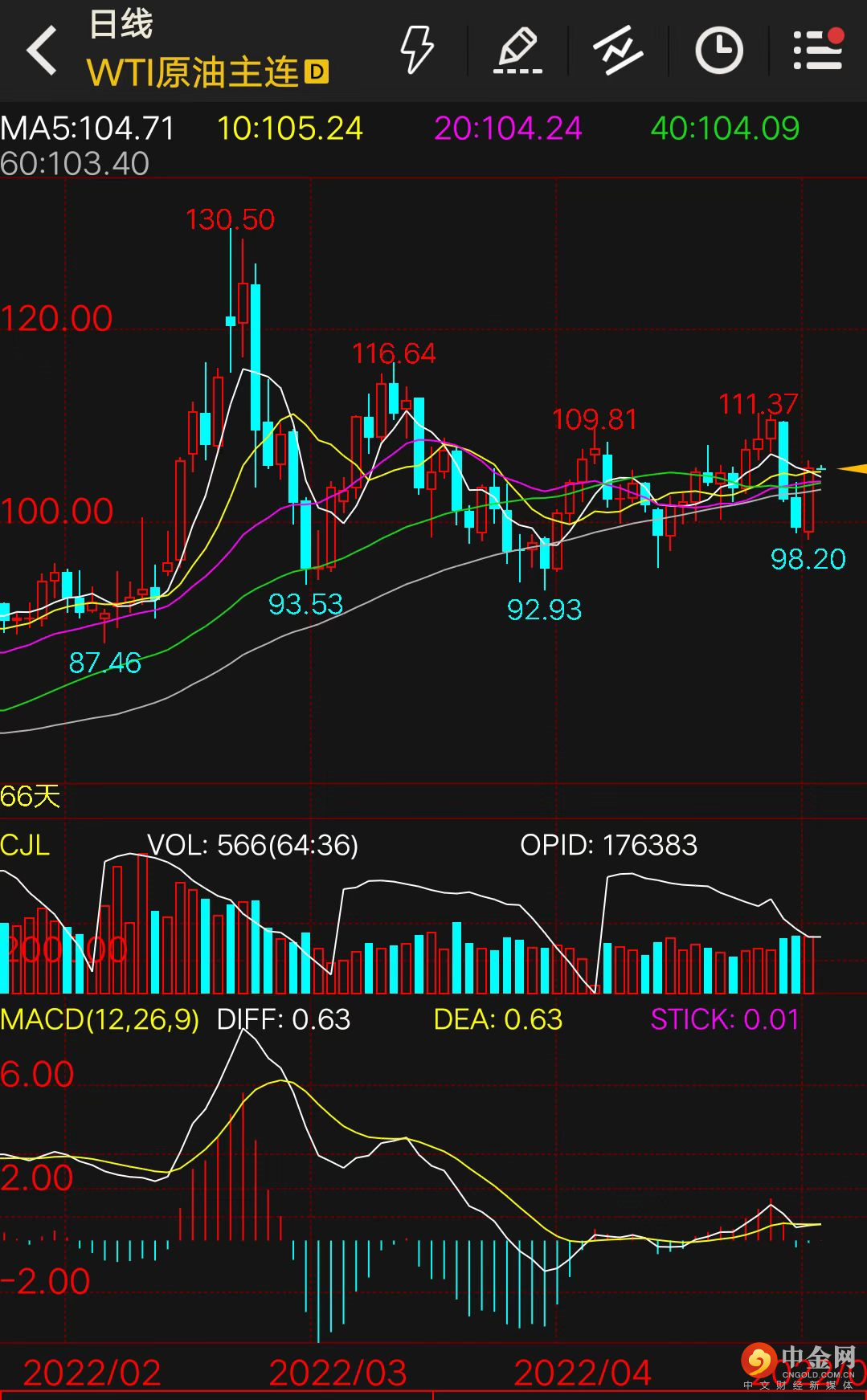 近期,国际油价波动剧烈。周三,油价大幅上行,WTI原油盘中最大涨幅超过6%,逆转前两日的下行走势。截至收盘,WTI原油期货主力合约上涨5.95美元/桶,收于105.71美元/桶,涨幅为5.96%;布伦特原油期货主力合约上涨5.05美元/桶,收于107.51美元/桶,涨幅为4.93%。