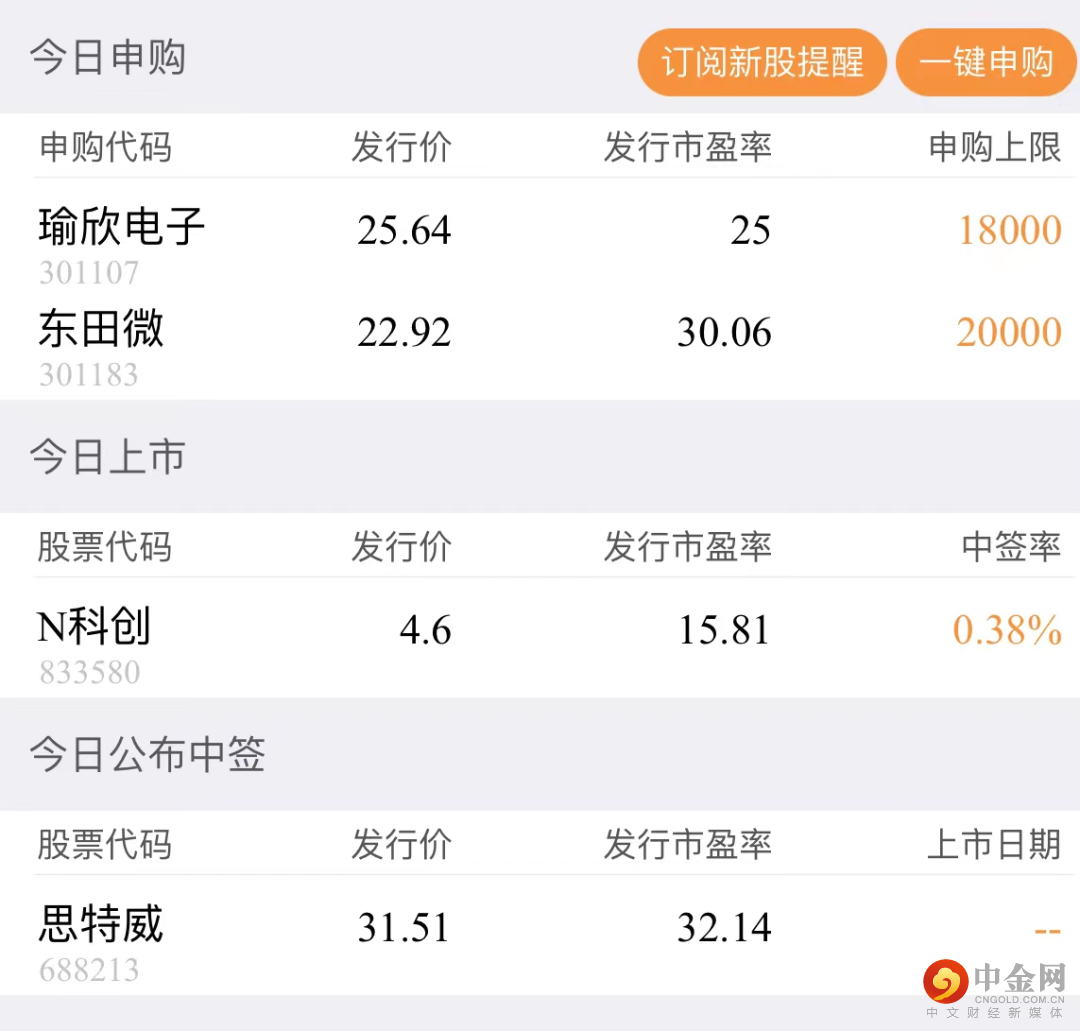 申购提醒:可设置提醒时间,在最合适的时段打新,提高中签几率。