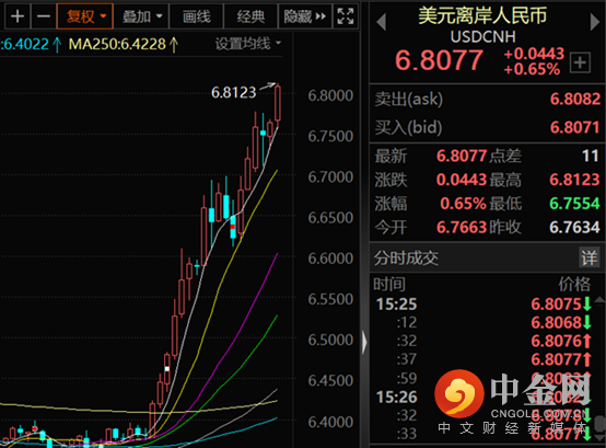 5月12日,离岸人民币兑美元汇率一度跌破6.81关口,为2020年9月以来首次。此外,据中国货币网报价,在岸人民币兑美元汇率跌破6.75关口,同样为2020年10月以来首次。
