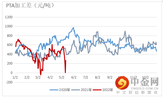 对此,CCF高级分析师沈银娇表示,由于近日成本端的快速上涨,PTA加工费压缩较为明显。从节后566元/吨下降至5元/吨,但目前尚未因加工费低引发更多PTA装置的检修或者降负。