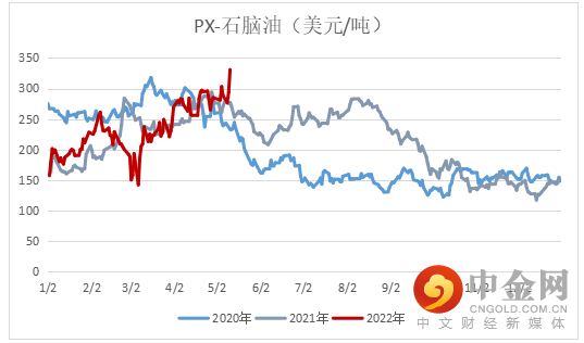 记者了解到,PX—石脑油加工差从2月份的100美元/吨以内的极低水平持续回升,4月中旬回到300美元/吨附近,近两日走高至330美元/吨以上,成为产业链上利润较好的环节。