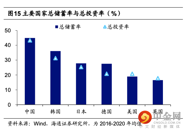 其实这也解释了,为什么我国当前并不适用利率黄金法则。法则的重要前提是“最大化消费”,大部分发达经济体可以接近充分消费水平,但我国过高的储蓄率明显会对消费形成挤压,使得均衡利率远低于经济增长水平。