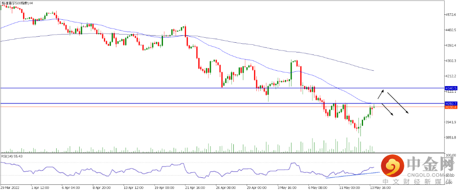 1.标普500 (SP500): 美股三大指数在上个交易日均大幅反弹,标普500上涨约100个基点,涨幅2.54%。技术面4小时图可见,目前指数反弹到了50均线和支撑阻力互换位4050左右位置,因为指数总体还是处于空头趋势,交易者需要关注反弹的持续性,如果成功上破4050区间,短期可以再观察4140位置的阻力。聚焦1小时图,如果指数不跌破3957左右位置,则可以继续保持看涨。反之,如果跌破3957左右,则看涨不成立。