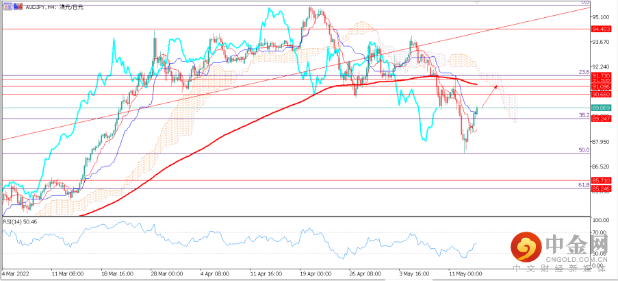 技术面观察,日图上显示上周五AUDJPY收出大阳线,暗示短期内将迎来技术性反弹的机会。4小时图上AUDJPY呈现多根阳线的拉升走势,显示短期内的看涨情绪浓烈。上方的压力位置可以分别关注:90.660、91.100、91.500及91.730等位置。
