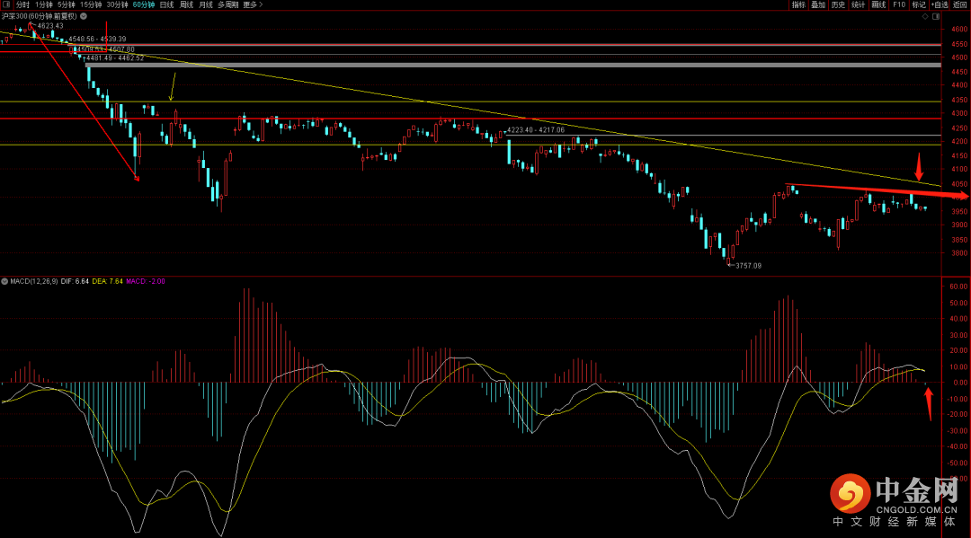 沪深300日线macd量柱开始钝化,接下来两天需要关注是否会出现持续,一旦出现后续的反弹空间将出现衰减,而下方首要支撑需要注意3921在没有跌破之前大概率还有望延续反弹走势。