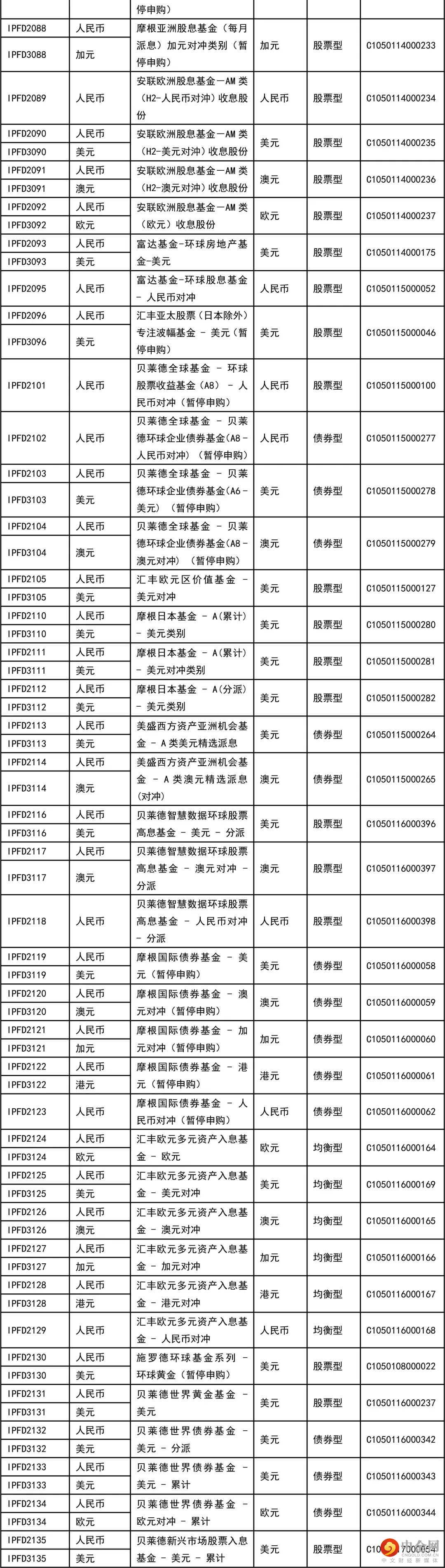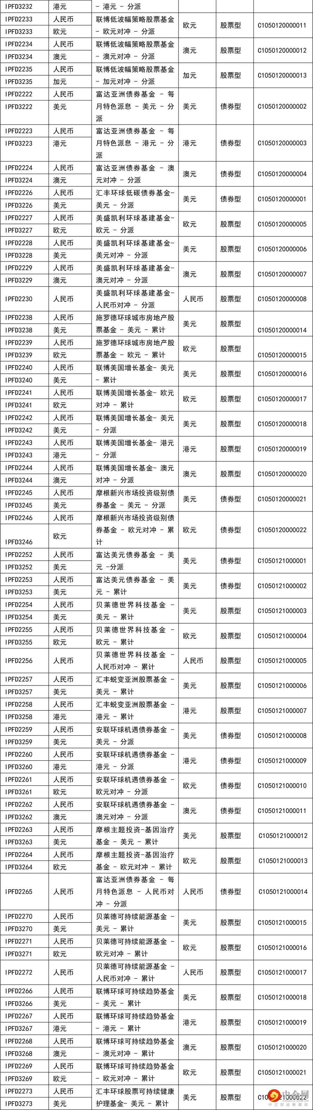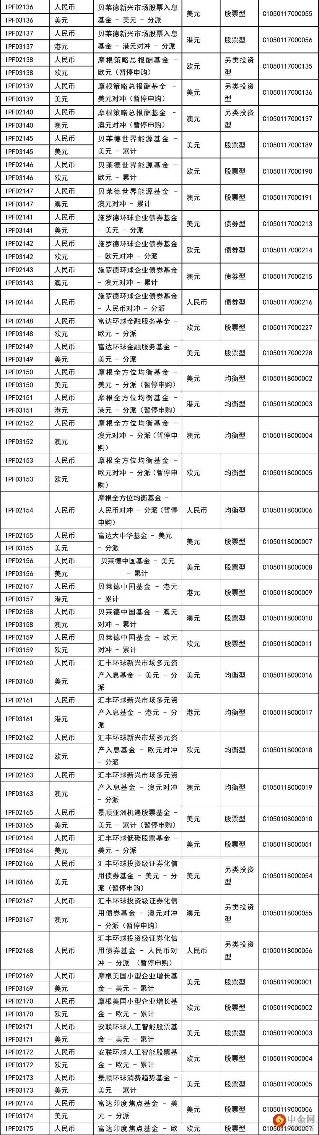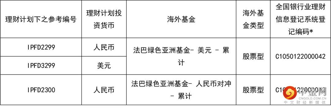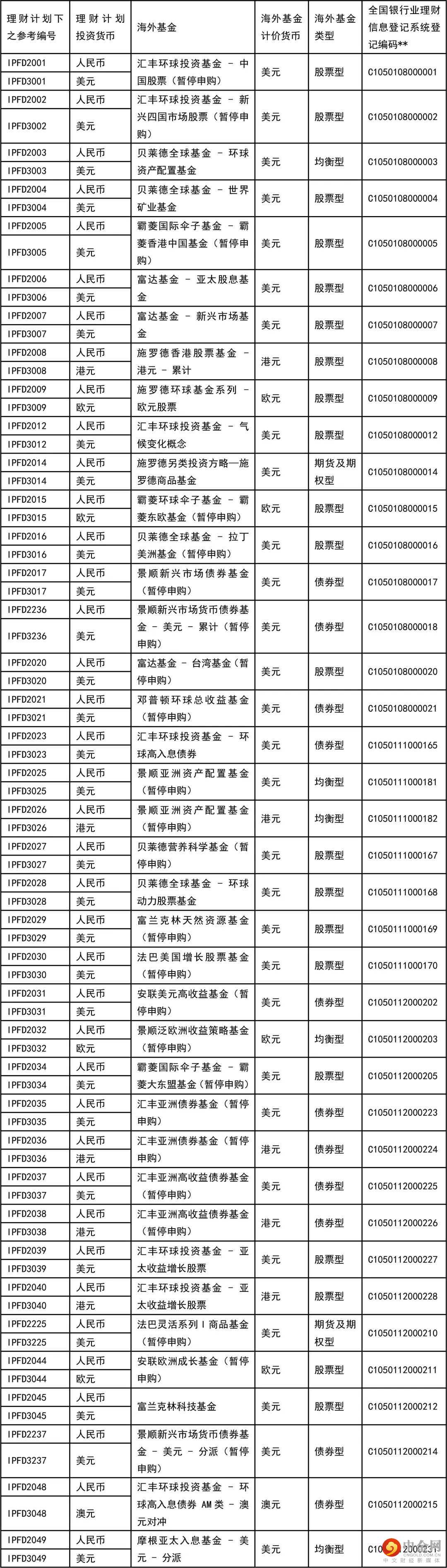 在本理财计划下,本行提供如下海外基金(以下海外基金均为与中国银行业监督管理委员会已签订代客境外理财业务监管合作谅解备忘录的境外监管机构所批准、登记或认可的公募基金),由投资者在申/认购本理财计划时自行决定其申/认购资金最终由本行投资于哪一个或多个海外基金。