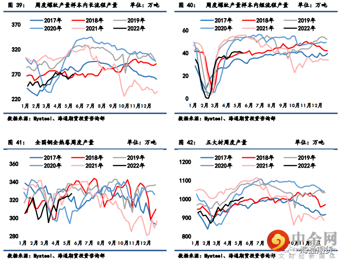 上周螺纹钢产量周环比增加 2.63 万吨至 310.14 万吨,同比增速环比前期扩大,同比去年水平减
