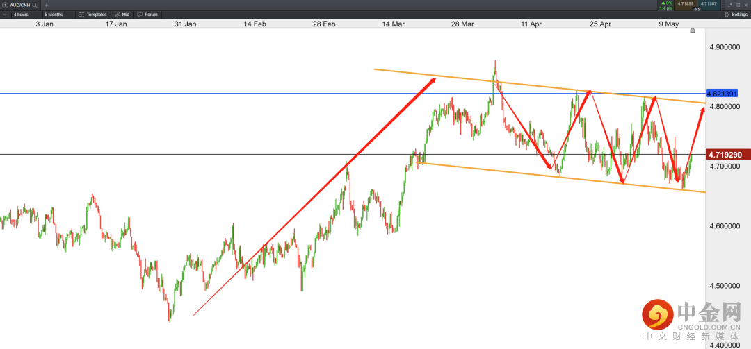 澳元兑人民币 AUD/CNH—— 4小时线图