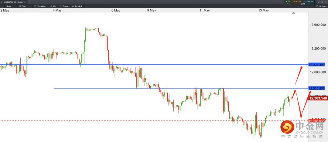 从当前美联储的表态来看,美联储对经济软着陆明显表现出信心不足的态度,也说明后续在紧缩的过程中是痛苦的,因此前景仍具有高度不确定性,美股并没有达到见底的条件。因此,反弹均是短期修复。上方目标:12530,13000。