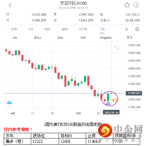 上周五纳指期货高开与震荡上行,展开强势反弹,最高来到12431.5点,最低来到11890点,上涨4.27%,收12380.875点。