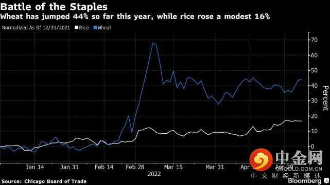 受到俄乌冲突的影响,全球粮食价格暴涨。彭博社称,今年以来,小麦价格今年已飙升约40%。而大米价格上涨16%,飙升的粮价对各国粮食安全构成了极大影响。