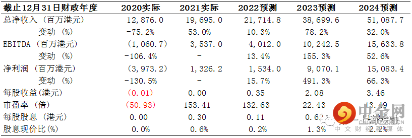集团22年第一季度业绩表现优于预期。由于集团拥有良好的产品和服务、资产负债状况在行业里最稳健、管理层的执行能力强劲、未来银河还有路凼第三、四期项目、横琴项目及潜在海外项目的推出; 我们对集团的长期发展是充满信心。我们维持买入评级。目标价为55.57港元, 相等于2024年EV/EBITDA的17倍。