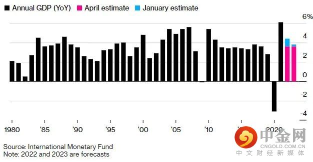 国际货币基金组织在4月份对2022年和2023年的增长率的预测低于1月份时的预测
