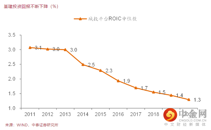 但是,基建投资回报不断下降,目前已经低于专项债融资成本。例如2020年以来,专项债资金用于土储、棚改等项目用途受到较大限制,主要通过城投平台用于基建项目。城投平台投入资本回报率(ROIC)的中位数已经从2011年的3.1%降至2020年的1.3%,明显低于专项债平均发行利率,从侧面解释了专项债资金使用效率的下降。