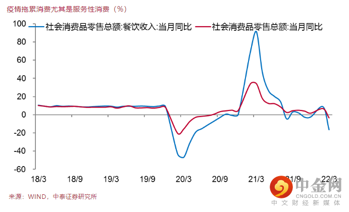 此外,制造业投资是固定资产投资中占比最大的,也应该在财政政策上支持新动能,加大研发的投入,提升自主创新能力。在去年年末中央经济工作会议上提出了三重压力,其中一条是“需求收缩”,需求包括内需和外需,外需不是国内政策能把控的,内需则包括投资和消费两大类。目前看,投资主要靠基建投资来拉动,但消费方面的政策力度还有待加强。一季度社消零售、限额以上零售增速分别录得3.3%、5.4%,其中3月当月增速分别为-3.5%、-1.4%,较1-2月增速均由正转负,社零环比增速也同步转负。受全国各地针对疫情采取管控措施的影响下,3月餐饮收入同比增速由正转负至-16.4%,对社零形成较大拖累。分品类来看,3月必需和可选消费品增速双双回落,可选消费回落幅度更大。四月份数据还没有公布,由于四月份的全国疫情加剧,估计四月份消费数据更不乐观。为此,扩消费,避免消费持续负增长成为当然之选。