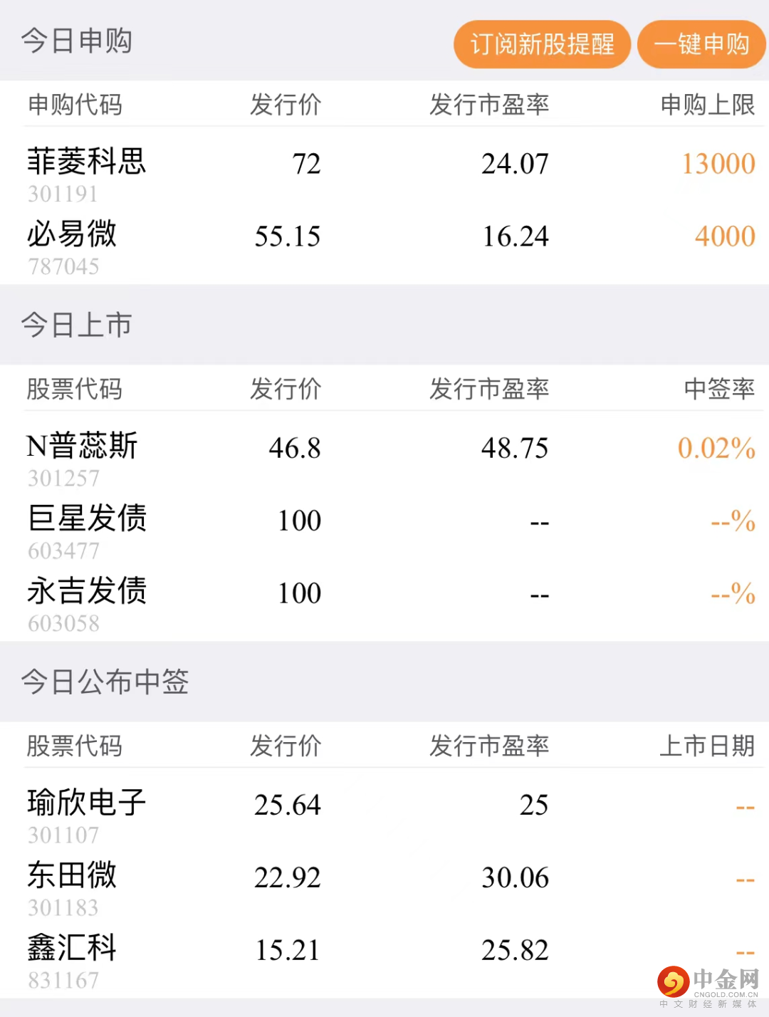 申购提醒:可设置提醒时间,在最合适的时段打新,提高中签几率。