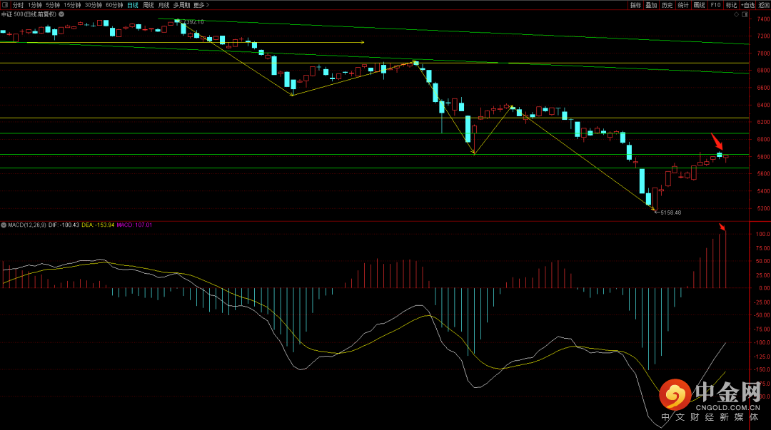 中证500短期虽然出现日线三卖结构,但有扩张的状态出现,注意把控好节奏点,好一点大概率会向上去试探5900到6000点这个区间,一旦有到达这个位置区间需要注意强抛压。大概率会出现再次回落的走势。