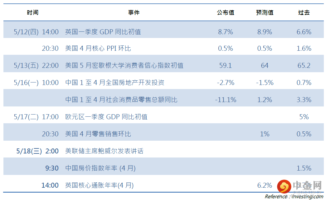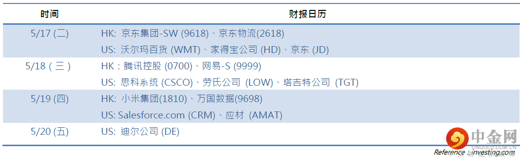 投资者关注周二发布的美国4月零售销售资料,美联储主席鲍威尔也将在周二发表讲话,市场希望借此寻找任何与美联储货币政策路径有关的线索。