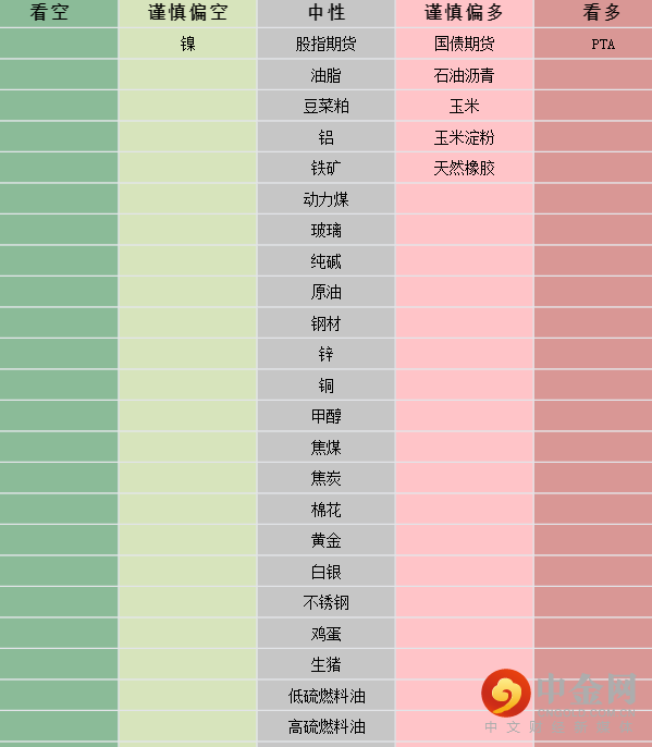 注:上图所有品种观点为主力合约的短期观点,具体以官网报告为准