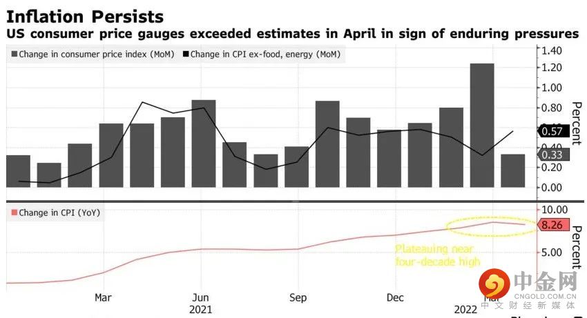 美国劳工部5月11日公布的数据显示,截至美国4月份CPI同比上涨8.3%;这一增幅略低于截至今年3月份的8.5%,后者是40年来的最高通胀率。尽管通胀有所回落,但近期的疫情和俄乌战争可能会在未来几个月继续对价格构成上行压力。鲍威尔明确表示,美联储在制定近期政策时不会过度分析即将出炉的数据。