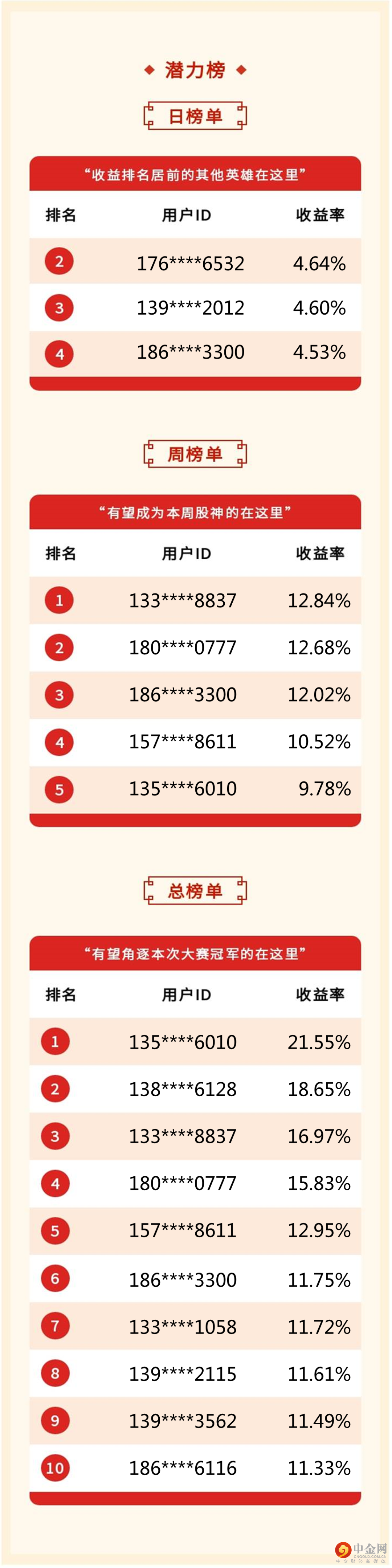恭喜上榜的朋友们!