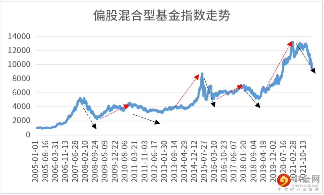 从偏股混合型基金指数走势来看,历史上每一次指数持续下跌时,往往也迎来中长线布局的历史窗口期。