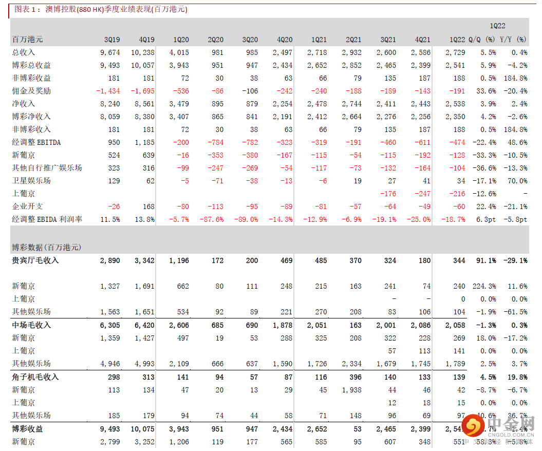 22年Q1经调整EBITDA亏损收窄,但上葡京表现仍然低迷