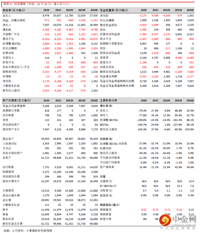 截至22年3月底,集团仅余17.5亿元的现金等值物,大约仅可维持三个月的营运。管理层预期于今年第二季完成完成约190亿元的再融资,其中133亿元会用来偿还银团贷款,余下的57亿元用作日常营运资金,而集团已获控股股东澳娱承诺提供50亿元备用信贷,作为临时流动性安排。