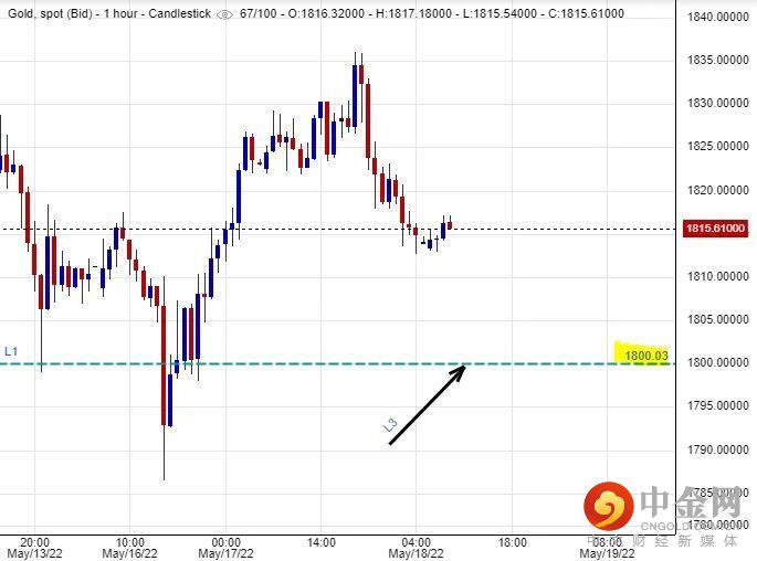 可以部署在$1,800美元左右建立好仓盘,短线看高金价一线至$1,835美元水平后止赚,止损在$1,792美元。